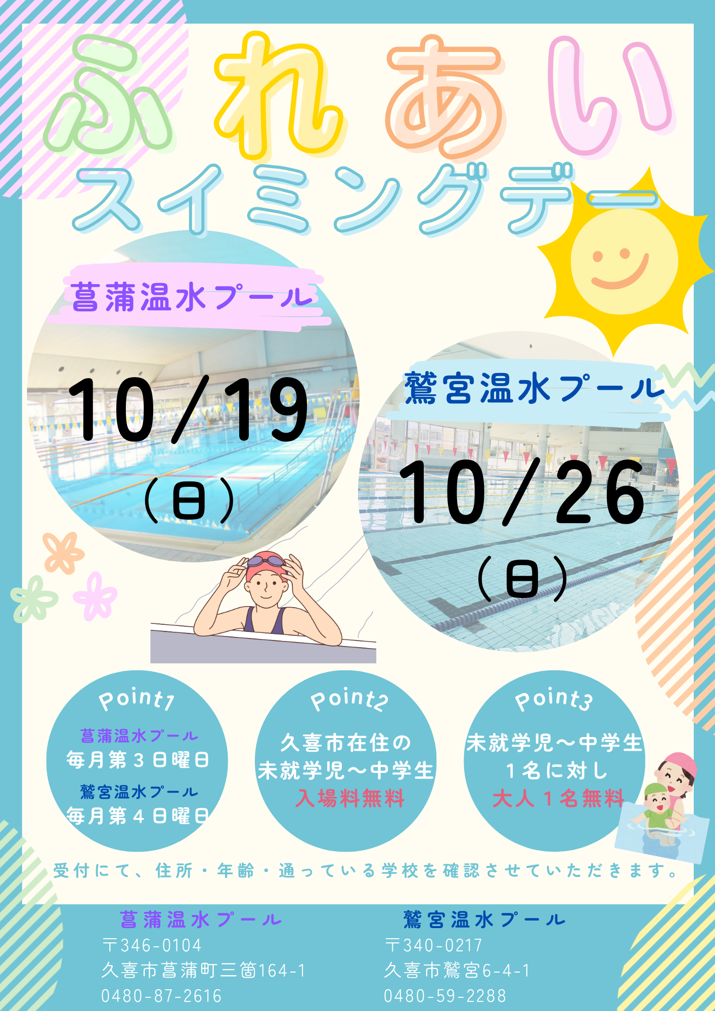 ホーム 一覧 10月度ふれあいスイミングデー実施のお知らせ<
